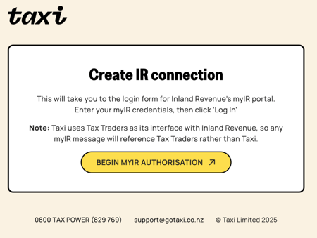 - You're all done - your myIR data will now appear in your Taxi account under Tax summary